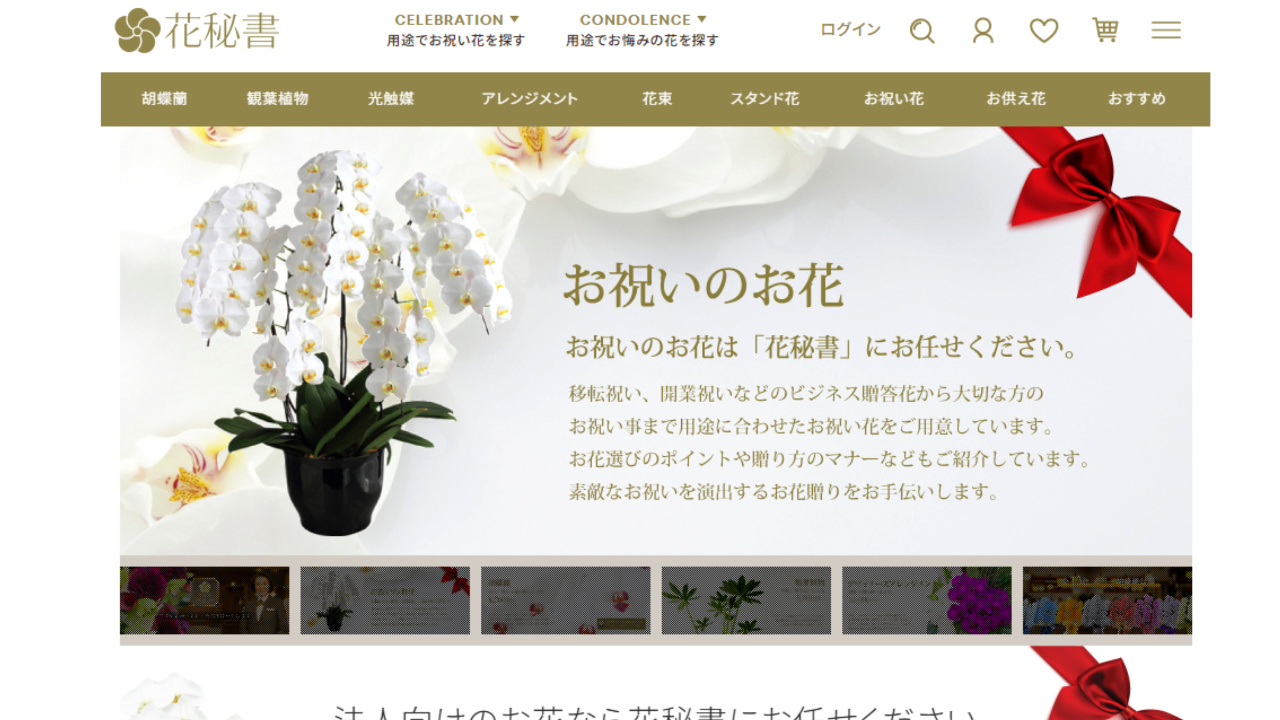 - 冠婚葬祭・法人用途・カジュアルギフトに対応できる汎用性・・開店・開業祝い、移転祝い、昇進祝い、母の日、新築祝い、供花など、さまざまな贈答用途に対応しているか。